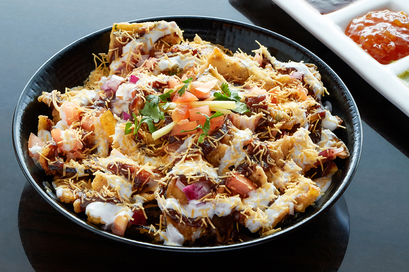 The samosa’s deliciously zaftig cousin. Take a samosa, break it apart and dress it up with a warm mixture of chickpeas and red onion and a colorful swirl of chutney and yogurt. Is it a meal? Is it a snack? We’ll let you figure that out. Order fried or baked samosa.